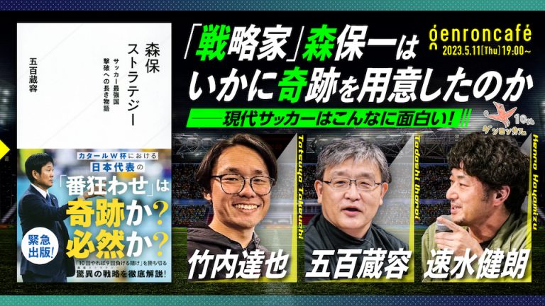 <blockquote class="wp-embedded-content"><a href="https://genron-cafe.jp/event/20230511/">「戦略家」森保一はいかに奇跡を用意したのか</a></blockquote> <script type='text/javascript'> <!--//--><![CDATA[//><!-- /*! This file is auto-generated */ !function(c,d){"use strict";var e=!1,n=!1;if(d.querySelector)if(c.addEventListener)e=!0;if(c.wp=c.wp||{},!c.wp.receiveEmbedMessage)if(c.wp.receiveEmbedMessage=function(e){var t=e.data;if(t)if(t.secret||t.message||t.value)if(!/[^a-zA-Z0-9]/.test(t.secret)){for(var r,a,i,s=d.querySelectorAll('iframe[data-secret="'+t.secret+'"]'),n=d.querySelectorAll('blockquote[data-secret="'+t.secret+'"]'),o=0;o<n.length;o++)n[o].style.display="none";for(o=0;o<s.length;o++)if(r=s[o],e.source===r.contentWindow){if(r.removeAttribute("style"),"height"===t.message){if(1e3<(i=parseInt(t.value,10)))i=1e3;else if(~~i<200)i=200;r.height=i}if("link"===t.message)if(a=d.createElement("a"),i=d.createElement("a"),a.href=r.getAttribute("src"),i.href=t.value,i.host===a.host)if(d.activeElement===r)c.top.location.href=t.value}}},e)c.addEventListener("message",c.wp.receiveEmbedMessage,!1),d.addEventListener("DOMContentLoaded",t,!1),c.addEventListener("load",t,!1);function t(){if(!n){n=!0;for(var e,t,r=-1!==navigator.appVersion.indexOf("MSIE 10"),a=!!navigator.userAgent.match(/Trident.*rv:11\./),i=d.querySelectorAll("iframe.wp-embedded-content"),s=0;s<i.length;s++){if(!(e=i[s]).getAttribute("data-secret"))t=Math.random().toString(36).substr(2,10),e.src+="#?secret="+t,e.setAttribute("data-secret",t);if(r||a)(t=e.cloneNode(!0)).removeAttribute("security"),e.parentNode.replaceChild(t,e)}}}}(window,document); //--><!]]> </script><iframe sandbox="allow-scripts" security="restricted" src="https://genron-cafe.jp/event/20230511/embed/" width="600" height="400" title="“「戦略家」森保一はいかに奇跡を用意したのか” — ゲンロンカフェ" frameborder="0" marginwidth="0" marginheight="0" scrolling="no" class="wp-embedded-content"></iframe>