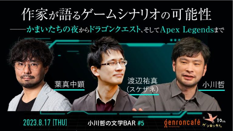 <blockquote class="wp-embedded-content"><a href="https://genron-cafe.jp/event/20230817/">作家が語るゲームシナリオの可能性</a></blockquote> <script type='text/javascript'> <!--//--><![CDATA[//><!-- /*! This file is auto-generated */ !function(c,d){"use strict";var e=!1,n=!1;if(d.querySelector)if(c.addEventListener)e=!0;if(c.wp=c.wp||{},!c.wp.receiveEmbedMessage)if(c.wp.receiveEmbedMessage=function(e){var t=e.data;if(t)if(t.secret||t.message||t.value)if(!/[^a-zA-Z0-9]/.test(t.secret)){for(var r,a,i,s=d.querySelectorAll('iframe[data-secret="'+t.secret+'"]'),n=d.querySelectorAll('blockquote[data-secret="'+t.secret+'"]'),o=0;o<n.length;o++)n[o].style.display="none";for(o=0;o<s.length;o++)if(r=s[o],e.source===r.contentWindow){if(r.removeAttribute("style"),"height"===t.message){if(1e3<(i=parseInt(t.value,10)))i=1e3;else if(~~i<200)i=200;r.height=i}if("link"===t.message)if(a=d.createElement("a"),i=d.createElement("a"),a.href=r.getAttribute("src"),i.href=t.value,i.host===a.host)if(d.activeElement===r)c.top.location.href=t.value}}},e)c.addEventListener("message",c.wp.receiveEmbedMessage,!1),d.addEventListener("DOMContentLoaded",t,!1),c.addEventListener("load",t,!1);function t(){if(!n){n=!0;for(var e,t,r=-1!==navigator.appVersion.indexOf("MSIE 10"),a=!!navigator.userAgent.match(/Trident.*rv:11\./),i=d.querySelectorAll("iframe.wp-embedded-content"),s=0;s<i.length;s++){if(!(e=i[s]).getAttribute("data-secret"))t=Math.random().toString(36).substr(2,10),e.src+="#?secret="+t,e.setAttribute("data-secret",t);if(r||a)(t=e.cloneNode(!0)).removeAttribute("security"),e.parentNode.replaceChild(t,e)}}}}(window,document); //--><!]]> </script><iframe sandbox="allow-scripts" security="restricted" src="https://genron-cafe.jp/event/20230817/embed/" width="600" height="400" title="“作家が語るゲームシナリオの可能性” — ゲンロンカフェ" frameborder="0" marginwidth="0" marginheight="0" scrolling="no" class="wp-embedded-content"></iframe>