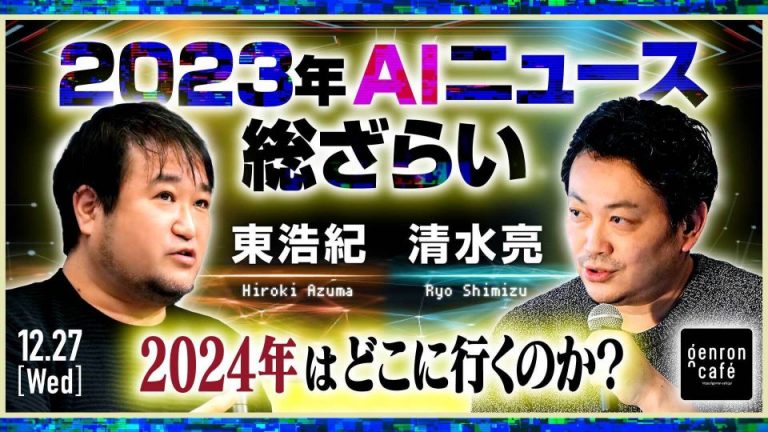 <blockquote class="wp-embedded-content"><a href="https://genron-cafe.jp/event/20231227/">2023年AIニュース総ざらい</a></blockquote> <script type='text/javascript'> <!--//--><![CDATA[//><!-- /*! This file is auto-generated */ !function(c,d){"use strict";var e=!1,n=!1;if(d.querySelector)if(c.addEventListener)e=!0;if(c.wp=c.wp||{},!c.wp.receiveEmbedMessage)if(c.wp.receiveEmbedMessage=function(e){var t=e.data;if(t)if(t.secret||t.message||t.value)if(!/[^a-zA-Z0-9]/.test(t.secret)){for(var r,a,i,s=d.querySelectorAll('iframe[data-secret="'+t.secret+'"]'),n=d.querySelectorAll('blockquote[data-secret="'+t.secret+'"]'),o=0;o<n.length;o++)n[o].style.display="none";for(o=0;o<s.length;o++)if(r=s[o],e.source===r.contentWindow){if(r.removeAttribute("style"),"height"===t.message){if(1e3<(i=parseInt(t.value,10)))i=1e3;else if(~~i<200)i=200;r.height=i}if("link"===t.message)if(a=d.createElement("a"),i=d.createElement("a"),a.href=r.getAttribute("src"),i.href=t.value,i.host===a.host)if(d.activeElement===r)c.top.location.href=t.value}}},e)c.addEventListener("message",c.wp.receiveEmbedMessage,!1),d.addEventListener("DOMContentLoaded",t,!1),c.addEventListener("load",t,!1);function t(){if(!n){n=!0;for(var e,t,r=-1!==navigator.appVersion.indexOf("MSIE 10"),a=!!navigator.userAgent.match(/Trident.*rv:11\./),i=d.querySelectorAll("iframe.wp-embedded-content"),s=0;s<i.length;s++){if(!(e=i[s]).getAttribute("data-secret"))t=Math.random().toString(36).substr(2,10),e.src+="#?secret="+t,e.setAttribute("data-secret",t);if(r||a)(t=e.cloneNode(!0)).removeAttribute("security"),e.parentNode.replaceChild(t,e)}}}}(window,document); //--><!]]> </script><iframe sandbox="allow-scripts" security="restricted" src="https://genron-cafe.jp/event/20231227/embed/" width="600" height="400" title="“2023年AIニュース総ざらい” — ゲンロンカフェ" frameborder="0" marginwidth="0" marginheight="0" scrolling="no" class="wp-embedded-content"></iframe>