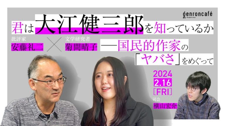 <blockquote class="wp-embedded-content"><a href="https://genron-cafe.jp/event/20240216/">君は大江健三郎を知っているか</a></blockquote> <script type='text/javascript'> <!--//--><![CDATA[//><!-- /*! This file is auto-generated */ !function(c,d){"use strict";var e=!1,n=!1;if(d.querySelector)if(c.addEventListener)e=!0;if(c.wp=c.wp||{},!c.wp.receiveEmbedMessage)if(c.wp.receiveEmbedMessage=function(e){var t=e.data;if(t)if(t.secret||t.message||t.value)if(!/[^a-zA-Z0-9]/.test(t.secret)){for(var r,a,i,s=d.querySelectorAll('iframe[data-secret="'+t.secret+'"]'),n=d.querySelectorAll('blockquote[data-secret="'+t.secret+'"]'),o=0;o<n.length;o++)n[o].style.display="none";for(o=0;o<s.length;o++)if(r=s[o],e.source===r.contentWindow){if(r.removeAttribute("style"),"height"===t.message){if(1e3<(i=parseInt(t.value,10)))i=1e3;else if(~~i<200)i=200;r.height=i}if("link"===t.message)if(a=d.createElement("a"),i=d.createElement("a"),a.href=r.getAttribute("src"),i.href=t.value,i.host===a.host)if(d.activeElement===r)c.top.location.href=t.value}}},e)c.addEventListener("message",c.wp.receiveEmbedMessage,!1),d.addEventListener("DOMContentLoaded",t,!1),c.addEventListener("load",t,!1);function t(){if(!n){n=!0;for(var e,t,r=-1!==navigator.appVersion.indexOf("MSIE 10"),a=!!navigator.userAgent.match(/Trident.*rv:11\./),i=d.querySelectorAll("iframe.wp-embedded-content"),s=0;s<i.length;s++){if(!(e=i[s]).getAttribute("data-secret"))t=Math.random().toString(36).substr(2,10),e.src+="#?secret="+t,e.setAttribute("data-secret",t);if(r||a)(t=e.cloneNode(!0)).removeAttribute("security"),e.parentNode.replaceChild(t,e)}}}}(window,document); //--><!]]> </script><iframe sandbox="allow-scripts" security="restricted" src="https://genron-cafe.jp/event/20240216/embed/" width="600" height="400" title="“君は大江健三郎を知っているか” — ゲンロンカフェ" frameborder="0" marginwidth="0" marginheight="0" scrolling="no" class="wp-embedded-content"></iframe>