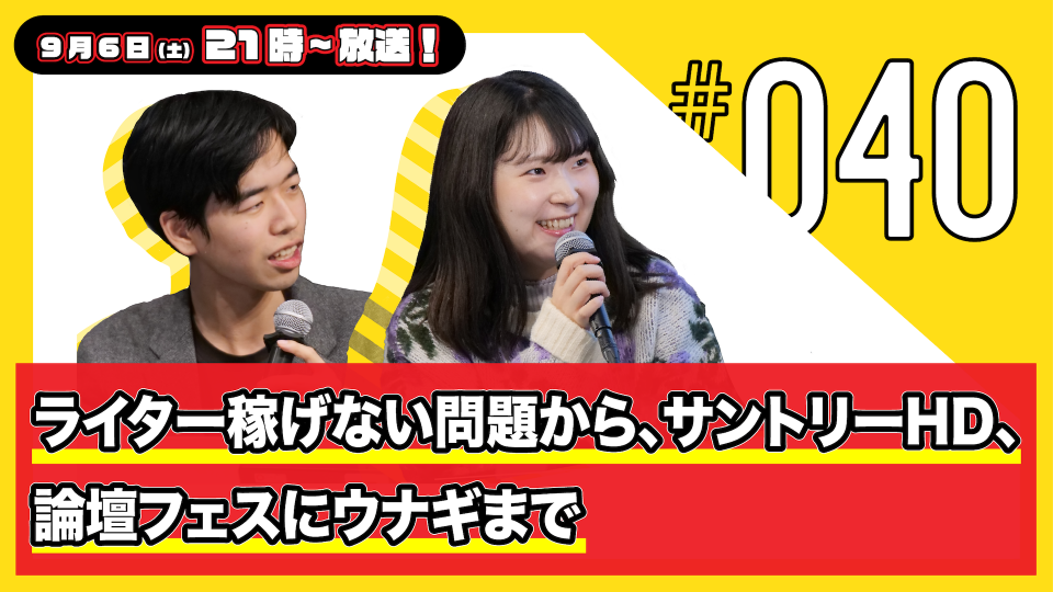 出演は、人文ウォッチの中の人(ウォッチャー)であるゲンロン編集部の植田 “ウォッチ” 将暉と、メディア論・社会学がご専門の山内萌さんです。