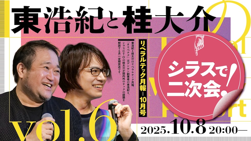 「リベラルテック月報」はゲンロン創業者の東浩紀と、シラスCTOの桂大介が国内外のテックの話題を解説する月一定期放送。国内外のテックニュースを取り上げながら、「リベラルなテック」のあり方を考えます。YouTubeのあとは今日もシラスで二次会です!