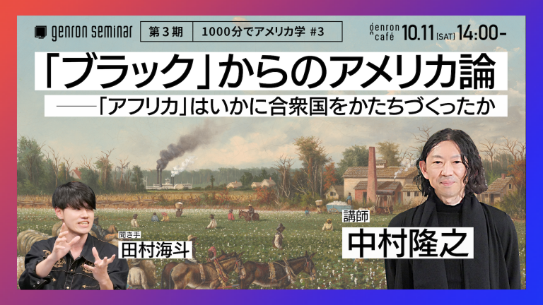 <blockquote class="wp-embedded-content"><a href="https://genron-cafe.jp/event/20251011/">「ブラック」からのアメリカ論</a></blockquote> <script type='text/javascript'> <!--//--><![CDATA[//><!-- /*! This file is auto-generated */ !function(c,d){"use strict";var e=!1,n=!1;if(d.querySelector)if(c.addEventListener)e=!0;if(c.wp=c.wp||{},!c.wp.receiveEmbedMessage)if(c.wp.receiveEmbedMessage=function(e){var t=e.data;if(t)if(t.secret||t.message||t.value)if(!/[^a-zA-Z0-9]/.test(t.secret)){for(var r,a,i,s=d.querySelectorAll('iframe[data-secret="'+t.secret+'"]'),n=d.querySelectorAll('blockquote[data-secret="'+t.secret+'"]'),o=0;o<n.length;o++)n[o].style.display="none";for(o=0;o<s.length;o++)if(r=s[o],e.source===r.contentWindow){if(r.removeAttribute("style"),"height"===t.message){if(1e3<(i=parseInt(t.value,10)))i=1e3;else if(~~i<200)i=200;r.height=i}if("link"===t.message)if(a=d.createElement("a"),i=d.createElement("a"),a.href=r.getAttribute("src"),i.href=t.value,i.host===a.host)if(d.activeElement===r)c.top.location.href=t.value}}},e)c.addEventListener("message",c.wp.receiveEmbedMessage,!1),d.addEventListener("DOMContentLoaded",t,!1),c.addEventListener("load",t,!1);function t(){if(!n){n=!0;for(var e,t,r=-1!==navigator.appVersion.indexOf("MSIE 10"),a=!!navigator.userAgent.match(/Trident.*rv:11\./),i=d.querySelectorAll("iframe.wp-embedded-content"),s=0;s<i.length;s++){if(!(e=i[s]).getAttribute("data-secret"))t=Math.random().toString(36).substr(2,10),e.src+="#?secret="+t,e.setAttribute("data-secret",t);if(r||a)(t=e.cloneNode(!0)).removeAttribute("security"),e.parentNode.replaceChild(t,e)}}}}(window,document); //--><!]]> </script><iframe sandbox="allow-scripts" security="restricted" src="https://genron-cafe.jp/event/20251011/embed/" width="600" height="400" title="“「ブラック」からのアメリカ論” — ゲンロンカフェ" frameborder="0" marginwidth="0" marginheight="0" scrolling="no" class="wp-embedded-content"></iframe>