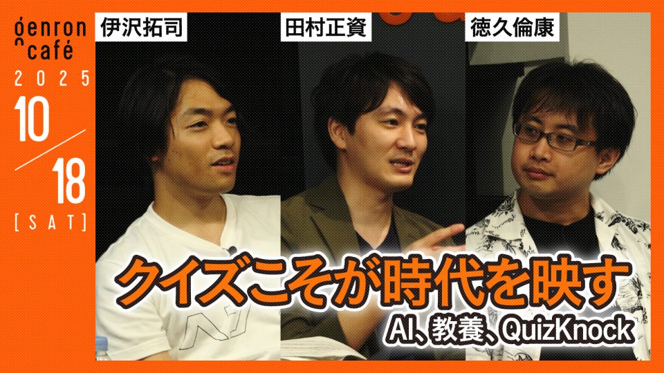 日本を代表するクイズメディア・QuizKnockの三氏をお招きしてイベントを開催します。生成AIによって変化する作問や知識のアップデートから、小川哲『君のクイズ』をはじめとするフィクションとの接点まで──いまかつてなく時代性を帯びる「クイズ」をざっくばらんに語り合います。詳細は近日公開予定です。
