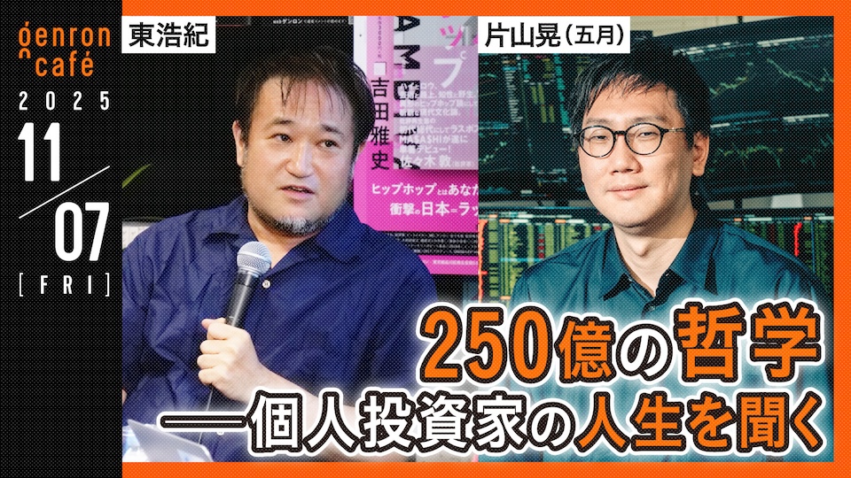10月前半、ゼロ年代からのファンだったという片山さんから東に突然連絡が来たのをきっかけにイベントが実現。「究極の個人投資家」ともいわれる五月さんはどんな哲学をもって投資家人生を歩んできたのでしょうか。ゲンロンカフェ史上でも異色の対談です。どうぞお見逃しなく!