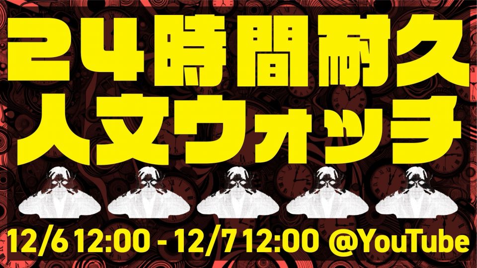 いくぞ! 今週の人文ウォッチ放送開始1周年記念、24時間人文ウォッチ。 12/6(土)正午から12/7(日)正午まで、24時間にわたり、ウォッチャーの植田将暉が語り尽くす!! 豪華ゲストも続々登壇予定です。