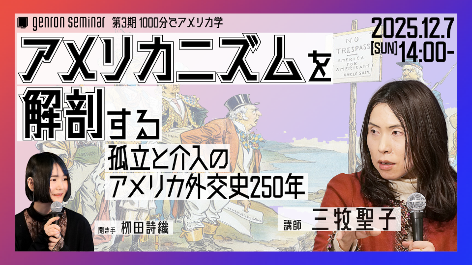 「ゲンロン・セミナー」第3期「1000分で『アメリカ』学」、最終講義の講師は国際政治学者の三牧聖子さんです。