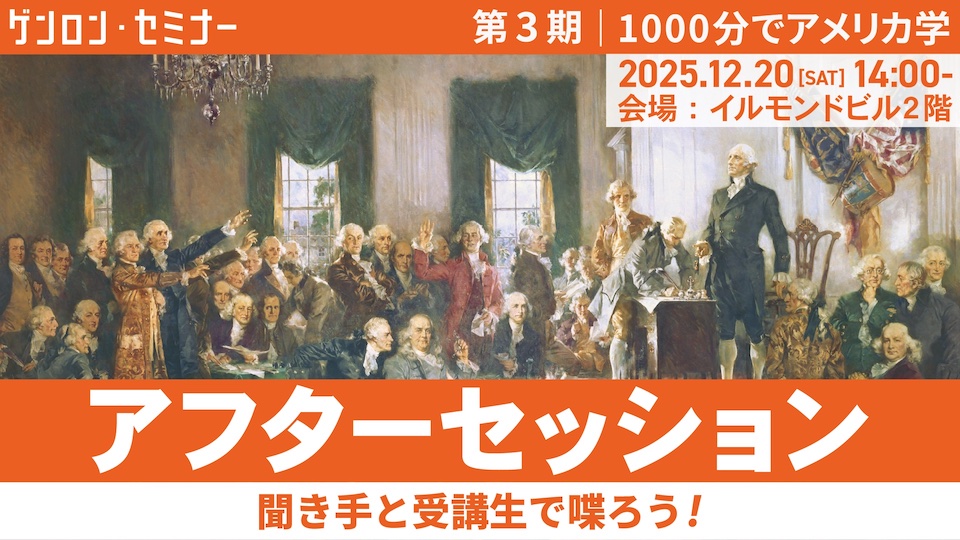 第3期もゲンロン・セミナーはみんなで話してみるまで終わらない! 1000分で「アメリカ学」真の最終回こと「アフターセッション」を開催します。 今回の会場は、「人文ウォッチ」や「リベテク」の収録が行われているシラススタジオ(イルモンドビル)です。